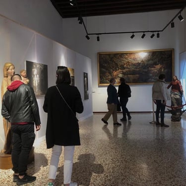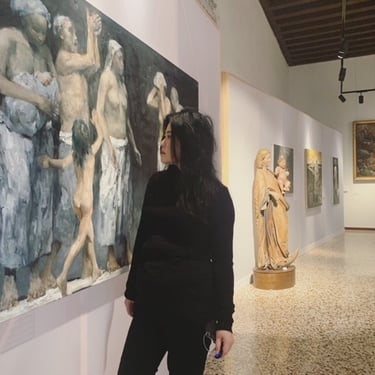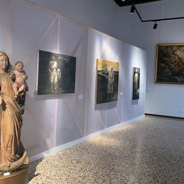 In this exhibition, Cen Long’s oil paintings are shown in tandem with relics from the fifteenth and sixteenth century, including two carved polychrome wood of the Virgin Mary, one with the Child and one with winged cherubs, a painted wooden sculpture of Saint Jerome, a portrait of the Saint in meditation, and the invaluable crowning masterpiece of the great renaissance maestro, II Paradiso by Tintoretto (1518-1594), all provided by the Fondazione Venezia Servizi alla Persona. Our curatorial philosophy is to connect the fifteenth century to the modern-day and so highlight the recurrence and constant resurrection of the spirit of purity and grace. Through the conversation between artworks from disparate times, we hope to exhibit the truth that the spirit of art bridges the distances of times and spaces.