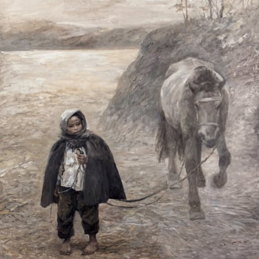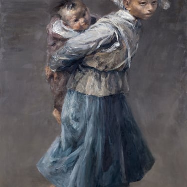 Cuckoo’s Call captures such a moment: the early morning mist has yet to lift, and a child leads a horse, preparing to help the adults plow the land. The cries of cuckoos echo through the hills, urging people to start their labor. The child, clad in thin clothing, walks on, searching beyond the frame for the unseen bird. Winter has passed, and spring is near. With this painting, the artist invites viewers to join him in a silent prayer for a warm spring for the children. Through the emotions and inner worlds of his figures, Cen Long continuously explores the innate purity and kindness of human nature. This pursuit of untainted essence is his artistic sanctuary—a deeply personal, almost primordial spirituality unique to him.