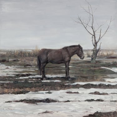 In Melting Snow, a horse, momentarily freed from labor during the winter’s rest, stands alone on the thawing earth. It is solitary, yet utterly at peace, as if it can feel the gentle caress of nature and the divine. Its quiet acceptance of a life spent trading freedom and toil for mere survival stirs a deep sense of contemplation. Much like Frozen Moment, this piece invites viewers to appreciate not only Cen Long’s masterful technique and elegance but also the deeper spiritual realm his works evoke—a realm where the soul finds purification. Perhaps this is what critics mean when they say his art possesses "a sublimation that borders on the religious."