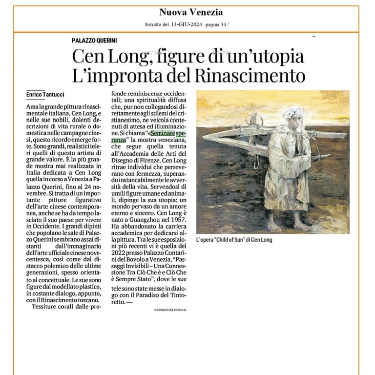 Ama la grande pittura rinascimentale italiana, Cen Long, e nelle sue nobili, dolenti descrizioni di vita rurale e domestica nelle campagne cinesi, questo ricordo emerge forte. Sono grandi, realistici telieri quelli di questo artista al grande valore. È la più grande mostra mai realizzata in Italia dedicata a Cen Long quella in corso a Venezia a Palazzo Querini, fino al 24 novembre. Si tratta di un importante pittore figurativo dell’arte cinese contemporanea, anche se ha da tempo lasciato il suo paese per vivere in Occidente. I grandi dipinti che popolano le sale di Palazzo Querini sembrano assai distanti dall’immaginario dell’arte ufficiale cinese novecentesca, così come dal distacco polemico delle ultime generazioni, spesso orientate al concettuale. Le sue sono figure dal modellato plastico, in costante dialogo, appunto, con il Rinascimento toscano.
