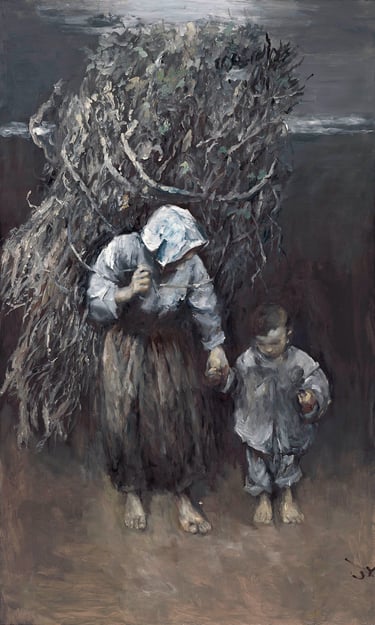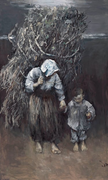 The mother, burdened with the weight of pig fodder on her back,holds her child’s small hand as they tread the path home.In the child’s careful grasp rests a fragile little bird. With a soft voice, the child whispers: “Don’t be afraid. I promise to care for you, to feed you until you grow strong. And then, you’ll surely fly back to your mother...”