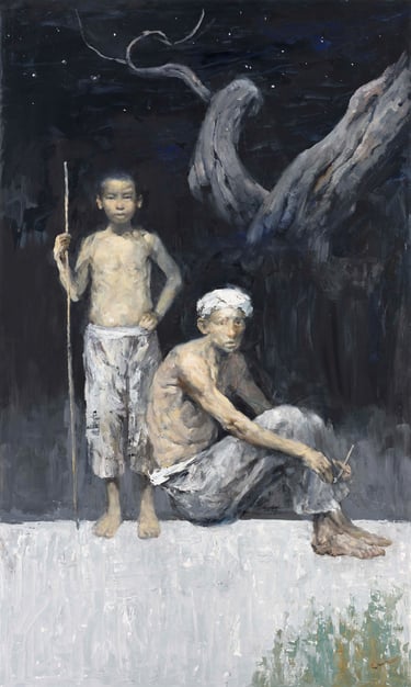 the soil watered with his sweat and toil. He never thought to give gentle love; he sought strength instead. Tonight, beneath the dazzling starlight, the son stands tall, yet in the vast, endless sky, he is but one small, flickering star among a sea of countless others.