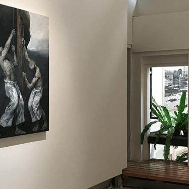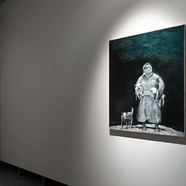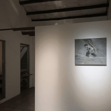 從去年底到今年初,我們在陽明山上玉溪有容教育基金會,舉辦岑龍的個展《我們播種希望》,展出他這十年間的作品回顧。與展覽同名的作品—「我們播種希望」,傳遞的是這樣的理念:畫中農夫趕著牛在前面耕田,而揹負著幼小孩子的妻子緊緊地跟在後面,撒著小麥的種子,在實際生活中他們是期許這一顆顆的種子能夠帶來明年的豐收⋯⋯