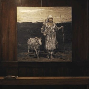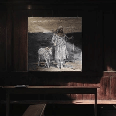 生命的昇華則包含對生活的回首,對人生種種矛盾和行為的探究,也是對人們在生存過程中從不妥協、努力奮鬥的禮讚,讓生命和靈魂得以慰藉、昇華。我們在作品〈蒼穹星光〉中看到夜空下的牧羊女,仰賴著天上的點點星光尋覓歸途。夜空中的星星,就是明確的標識。
