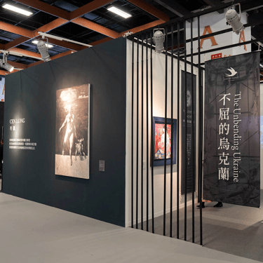 此外,我們另外有一區《不屈的烏克蘭》,展出來自哈爾科夫的四位畫家的最新作品,他們正經歷著戰爭之苦,有人成為難民前往德國,有人繼續留在烏克蘭,在戰火的恐懼下生活。他們最近堅強地運用自己的畫筆,畫下他們對於戰爭的種種感受;有痛苦、有悲傷、有不捨、有恐懼,但更多的是對未來的希望。