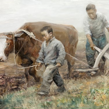 其作品畫面保持著源於對生活細緻觀察和熱愛而形成的寫生風格,真實生動; 他對西方油畫語言有著深刻的領悟和熟練的掌控,但他追求的是油畫的中國味道,他的追求他做到了,我們看他的筆觸肌理,有著類似中國畫山水皴法的表現力。 從題材上,他對底層、對日常、對邊遠少數族裔的持續關注,閃耀著強烈的人性光輝。