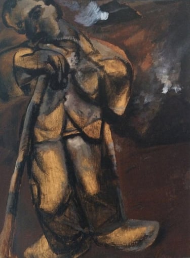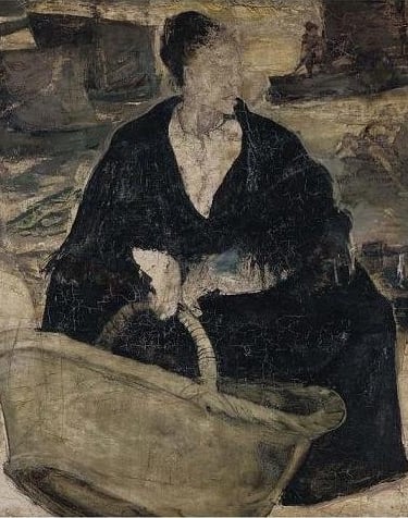 他的畫最重要的是構圖,繪畫的形式就是他創作思維的寓所。一切形象的塑造都要服從於它。他的人物畫構圖往往是頂天立地的;呈方形的人物盡量撐滿著畫面,以至於有時候頂到了畫面的邊沿,而不得不將腦袋削去一些。這種無視古典傳統繪畫背景與人物必須諧和的方式,最大限度地展示了視覺的張力效果,那些大手大腳的農夫漁婦直愣愣的撲面而來,不合比例的結構反倒顯得格外自然,令人終生難忘。而暗晦但雅緻單純的色彩簇擁圍裹在人物的四周,更增添了樸實天真又帶憂傷的氛圍。