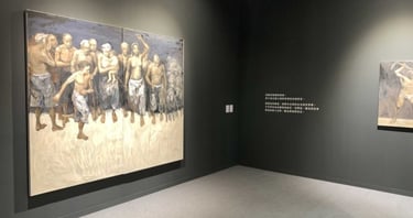 “大片的深色展面透露著莊嚴的氣息,踏進去展示空間內,岑龍的作品懸掛在暗色的牆面上,搭配簡練的燈光,立刻吸引住觀眾的目光。涵藝術於本屆台北國際藝術博覽會(ART TAIPEI 2021)規劃的展區「看不見的通道─岑龍與西洋藝術史...