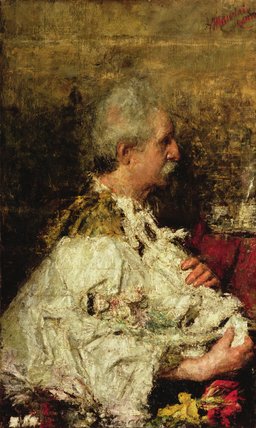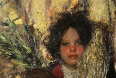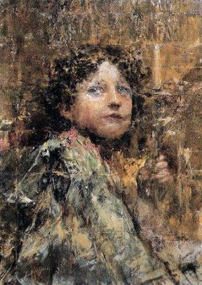 義大利19世紀末的畫家安東尼奧· 曼奇尼(Antonio Mancini, 1852-1930)就像是一位通靈的魔術師。他能夠將所描繪形象的靈魂注入到畫作裡,使觀眾能清晰地領略它的存在。我第一次接觸曼奇尼的作品時,真是感到非常震撼的;他畫中人物的眼神緊緊吸引了我,令我久久無法釋懷。這幅<Ilchierickhetto, 1905-1910>的小油畫,描繪了一位在彌撒時的祭童半身像。畫家抓住了聖樂響起的瞬間,從畫面上看到祭童屏住呼吸側著頭向教堂上空張望,灰色的瞳仍閃爍著純真而崇敬的光芒,在這一時刻,他的心中只有上帝的存在。他用左手舉著燭台,身體幾乎隱入似有玻璃窗和壁牆的反光和許多燈火的朦朧背景之中。當你看完這幅畫後很久,也許會記不起畫家的名字,但我肯定這孩子那充滿期望和虔誠的眼晴,尤其是那裡面兩點小小的恰到好處的高光,定會使你終生難忘。曼奇尼在作此畫時的過程就是一系列靈魂的發現,攝入,複製、再現的行為,是一次真正的靈魂轉移。